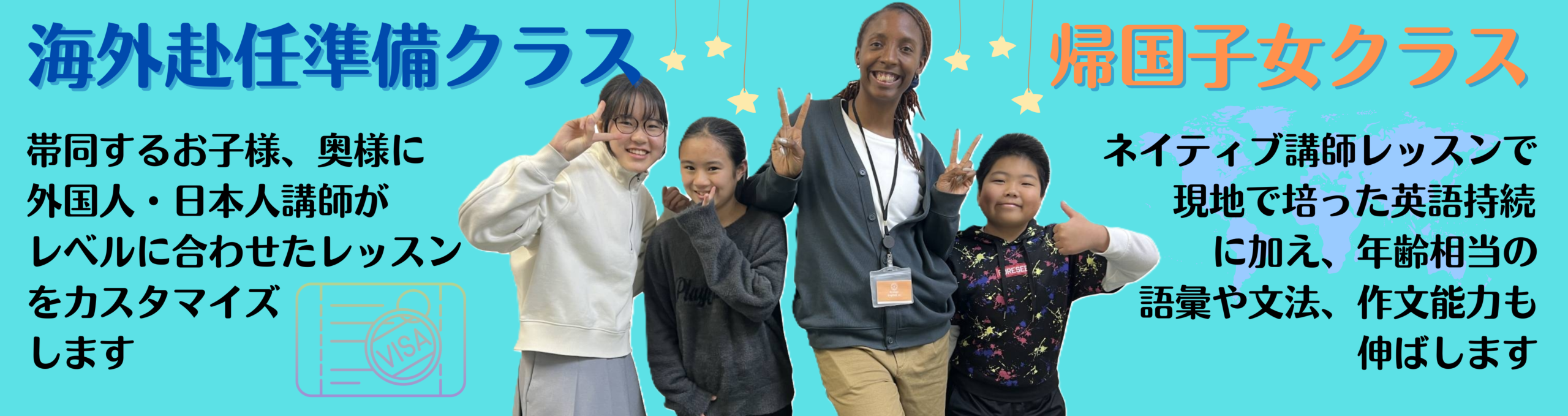 帰国後は現地で培った英語力持続だけでなく、年齢に応じた語彙や文法力を伸ばし、さらにライティングやリーディング力も培うレッスンを提供します。